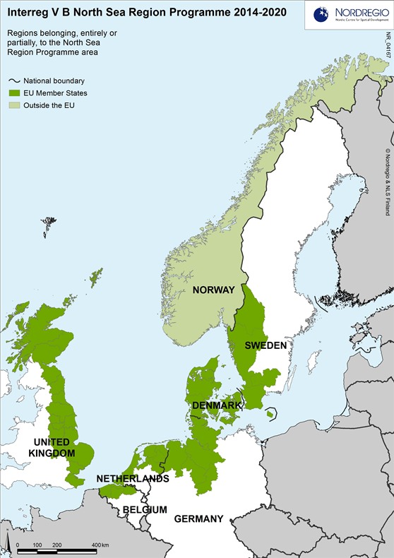 Interreg V-B North Sea Region Programme area for the period 2014-2020