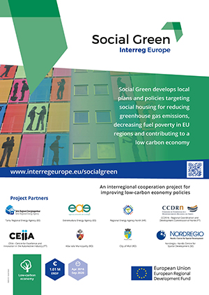 The Social Green project intends to address the issue of green social housing in order to contribute to reduce the GHG emissions as well as to reduce the fuel poverty indicators in EU regions towards a lower carbon economy.