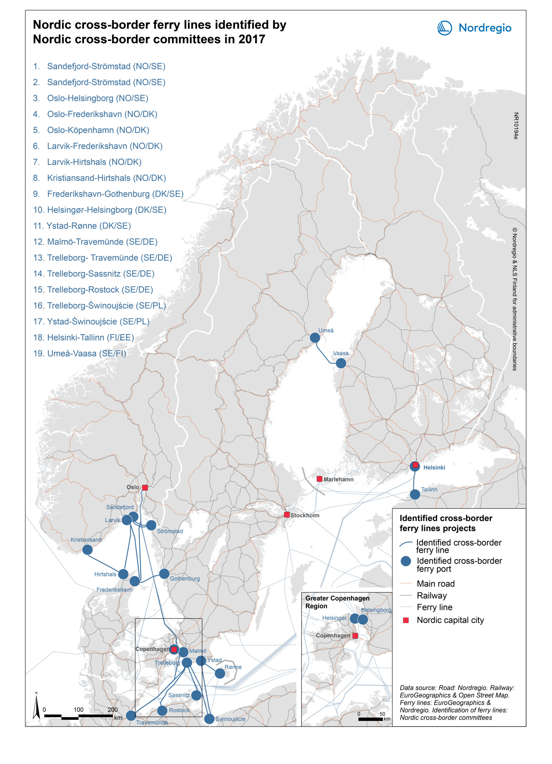 These cross-border ferry lines are meant to show the importance of further development of movements and infrastructure plans across Nordic national borders, in opposition to infrastructure projects which are drawn up primarily within a national context, without a specific focus on cross-border linkages.