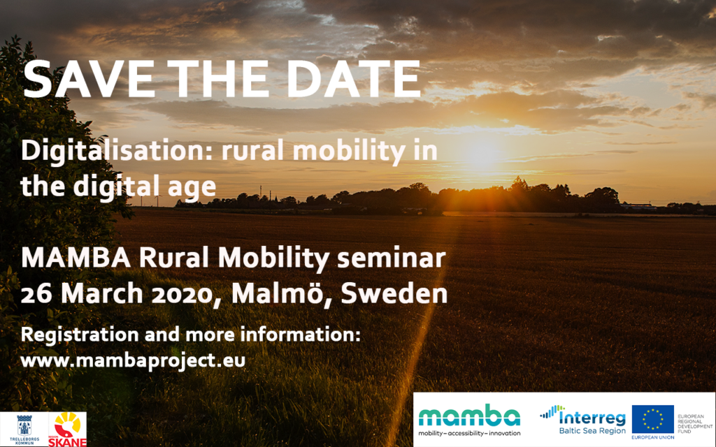 The 5th and last Rural Mobility Seminar organised by the MAMBA consortium will focus on digitalisation and new technology that can improve rural mobility. The event will take take place on 26 March 2020, at 12:30 CET.