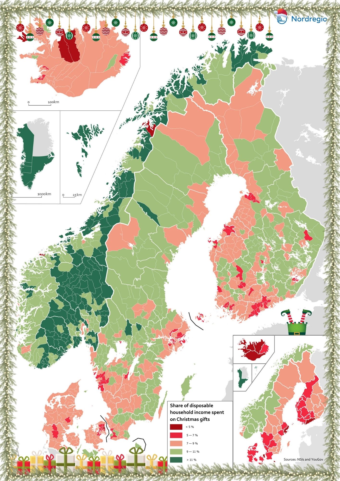 The only gift you need for the holiday! Nordregio presents a map of household spending on Christmas gifts across the Nordic Region, as a percentage of average monthly disposable income.