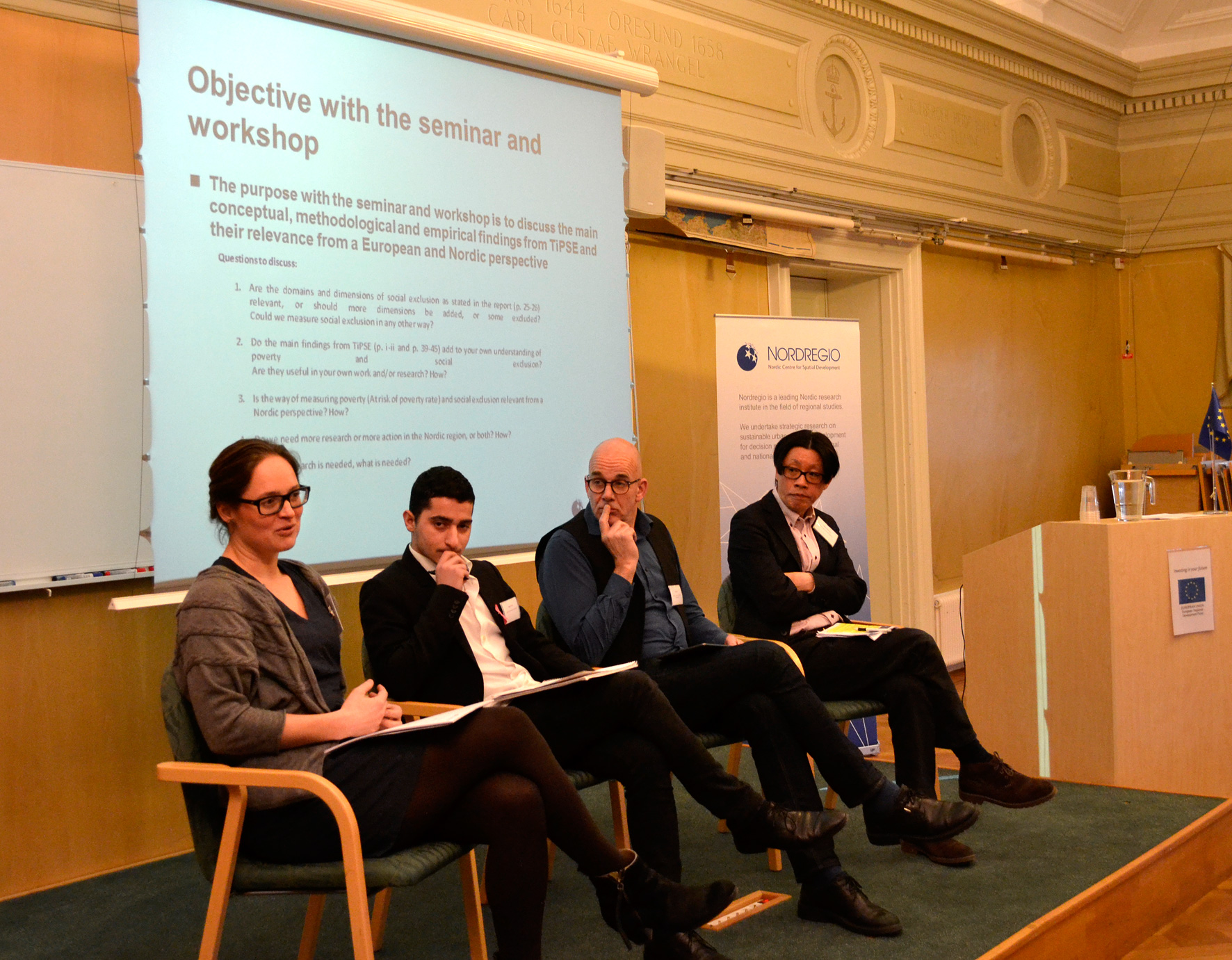 The final workshop and seminar of “The Territorial Dimension of Poverty and Social Exclusion in Europe (TiPSE)” gathered project partners, researchers, stakeholders at grass root, local and regional level at Nordregio. Findings of the project were presented in terms of mapping patterns of poverty and social exclusion in Europe, and how this could be relevant to Nordic actors.