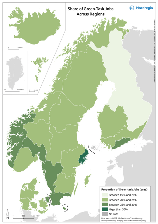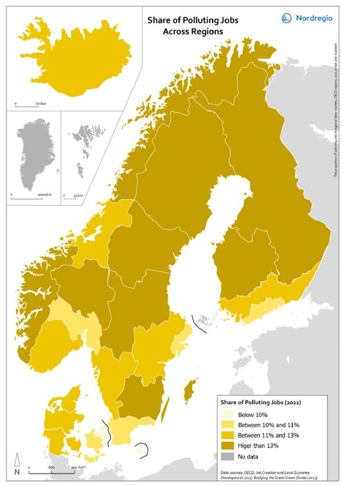 The report highlights best practices from across the Nordic countries, illustrating how a just green transition can be navigated without leaving anyone behind. One key challenge highlighted in the report, was the difference between rural and urban regions – where the rural areas currently have more “brown” or polluting jobs, and urban regions host more “green” jobs. However, in the future many green industries are expected to be established in more remote areas.
