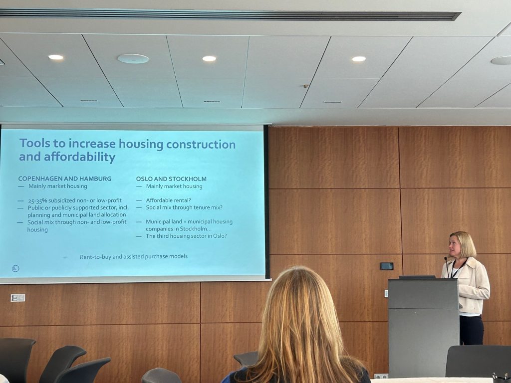 Additionally, Anna Granath Hansson presented her research on strategic planning for affordable housing in the Nordic countries and Germany. This work, a collaborative effort with Oslo Metropolitan University (OsloMet), delves into strategies to address the pressing need for affordable housing in these regions.