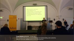 The publication ”Social hållbarhet och stadsutveckling. Det politiska, det praktiska och den byggda miljön” (“Social sustainability and urban development. The political, the practical and the built environment”) was released on December 15th at an event organized by Arkus at the Finland Institute in Stockholm.