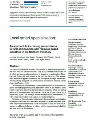A common challenge for Northern communities is how to retain a local benefit from resource-based industries. This study assesses the process of developing a local smart specialisation strategy in two…