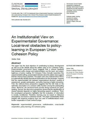 The paper has the dual objective of contributing to theory development as well as to the debate about the added value of EU Cohesion Policy. Experimentalist governance theory suggests that…