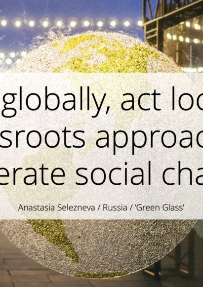 Anastasia has long been interested in environmental sustainability and is today involved in many activities to promote these values. However, after studying Environmental engineering in St. Petersburg, she was deeply demotivated and could not imagine that change towards sustainability was possible in Russia. After spending some time in Finland and learning about social entrepreneurship as a grassroots approach to lead social change, Anastasia started two start-ups. The first, ‘Green Glass’, is a studio where she creates decorations and art installations from recycled glass. The second is as organiser and coach of interactive workshops using the Global Goals Jam methodology to support companies or organisations act on the sustainable development goals (SDGs). Anastasia is also contributing to an exhibition about waste in Russia for the new ‘mobile’ contemporary art museum.