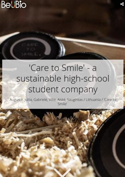 ‘Care to Smile’ is the name of the student company started by a bunch of enthusiastic high-school students wanting to get a taste of the business world while keeping the sustainability flag high. They signed up to the ‘Junior Achievement programme – Lithuania’ to get the support they needed and got awarded as the 3rd best student company in Lithuania in 2020 (out of 280 companies). As the name suggests, ‘Care to Smile’ is producing toothpaste that takes better care of people’s health and the environment. It has a solid consistency; it is packed in a recyclable glass jar and uses only natural ingredients.