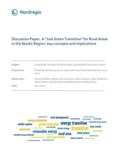 This paper presents conceptual guidance and working definitions of aspects related to energy in the just green transition. The analysis focuses, in particular, on the key implications for rural areas in the Nordic Region.