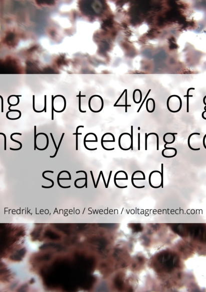 Fredrik Åkerman, Leo Wezelius and Angelo Demeter are three young enthusiasts on a mission to reduce 4% of the global greenhouse gas emissions, through feeding cows with a special red seaweed. Cows produce more than 5% of the global greenhouse gas emissions globally, just by farting and burping methane gas. That is more than twice as much emissions as all the world’s airplanes combined. But thankfully, over six years of research has now been published showing that by supplementing a small amount of a special red seaweed to the diet of cows, their enteric methane production goes down by up to 80%. So, in ‘Volta Greentech’, the team is now on the way to establishing the first on-land commercial scale production of this specific red seaweed to make it the new industry standard for the dairy and beef industry.