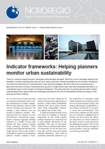 This policy brief aims to provide planners with a clearer understanding of the opportunities and challenges presented by the use of sustainability indicators to support urban planning and policy-making.