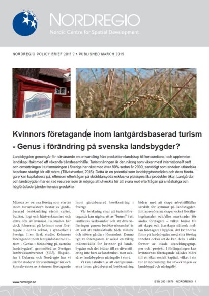 I en färsk studie, Kvinnors företagande inom lantgårdsbaserad turism – Genus i förändring på svenska landsbygder?, genomförd av Sveriges lantbruksuniversitet (SLU), Högskolan i Dalarna och Nordregio har vi därför studerat förutsättningar för och konsekvenser av kvinnors företagande inom gårdsbaserad besöksnäring i Sverige. I denna policy brief sammanfattas de viktigaste resultaten av studien.