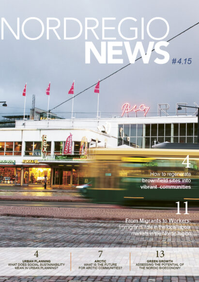 In 2015, we have put substantial resources into research commissioned and funded by the four Nordic working groups under the Nordic Council of Ministers’ Committee of Senior Officials for Regional Policy: Demography and welfare; Sustainable regional development in the Arctic; Green growth – innovation and entrepreneurship; and Sustainable urban regions. We are pleased to say that many regional case studies, Foresight analysis and policy overviews were conducted during the year, in addition to the development and launch of the interactive web-mapping tool, NordMap. The Nordic Demography Programme was finalised and three large-scale EU-funded projects started: REGINA, Baltic SCOPE and Baltic Urban Lab. More information on some of these projects will be found in this issue.