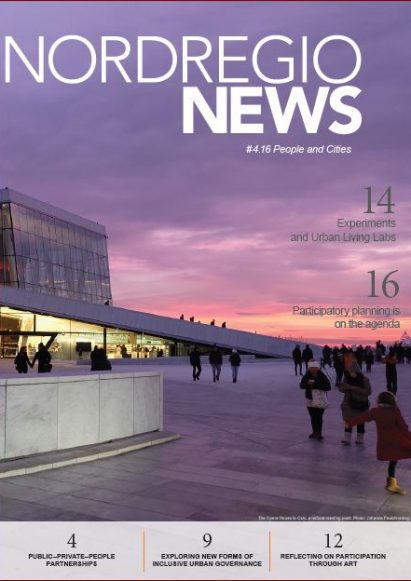 This final issue of Nordregio News in 2016 looks closer at some projects and concepts where people are part of the planning process. Involving citizens early in the planning processes opens up for new ideas and approaches and including art when discussing architecture and urban planning might be the way forward when planning and building sustainable cities.