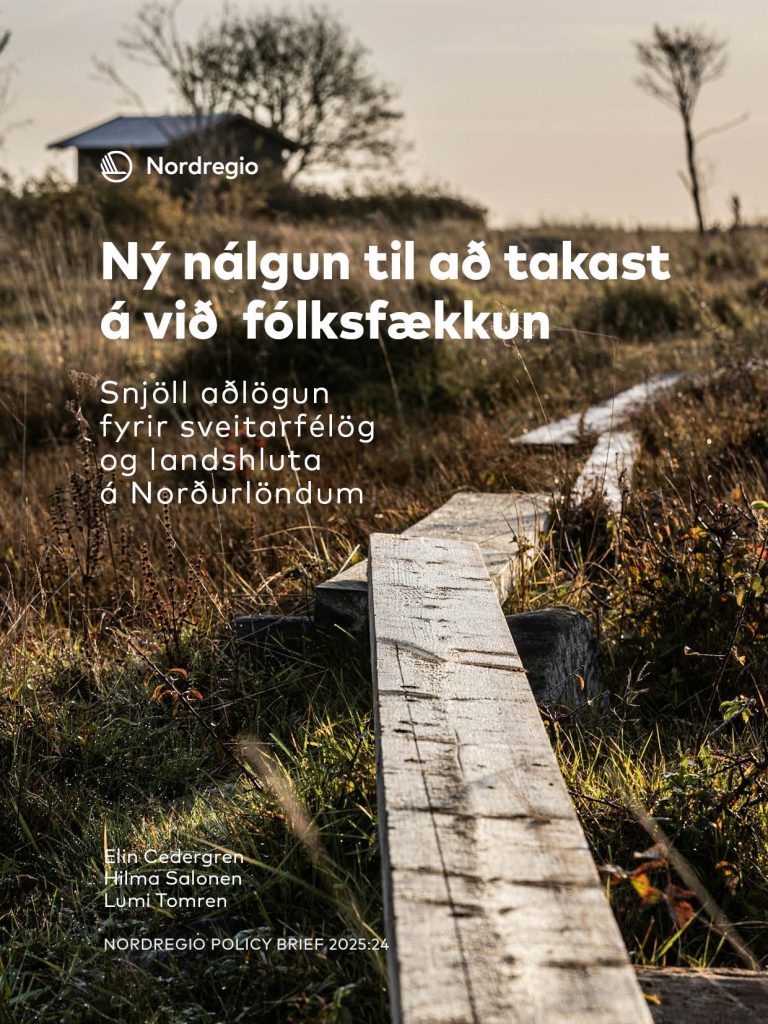 This policy brief is part of the Smart Adaptation to Rural Realities: approaches and practices in Nordic municipalities and regions (2023–2025) project, which explores governance strategies for managing demographic decline in the Nordic region. The findings draw on a review of Nordic and European research, an analysis of regional and rural development policies, and a series of workshops with municipal, regional, and national representatives from Sweden, Finland, Norway, Iceland, and Denmark. The project aims to facilitate knowledge exchange and identify adaptive strategies that support long-term resilience in shrinking communities.