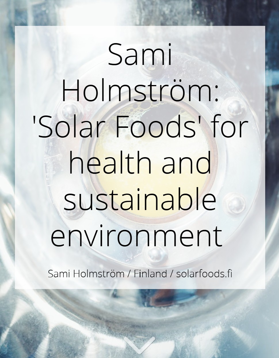 Not far from Sci-Fi, the gamble of Sami Holmström and ‘Solar Foods’ is to produce protein in a lab that could be placed in the Sahara Desert, the arctic, or even the space. The resulting product, Solein®, promises to revolutionise food production by completely replaced the animal and plant based standard. By cutting the use of water and land to a fraction of what plant and meat production require today, ‘Solar Foods’ foresees enormous environmental and social gains.
