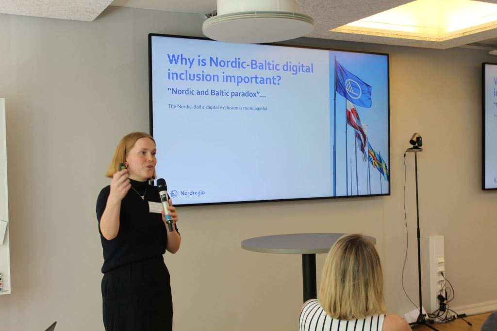 Civil society actors have been identified as key players in the work towards digital inclusion. However, this increased responsibility needs structured funding. Sigrid Jessen presented this, among other key takeaways, from Nordregio’s case studies on how 25 NGOs and civil society actors in the Nordic and Baltic region work to drive inclusion.