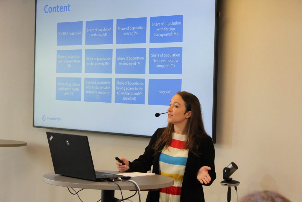 Nordregio has developed a tool to support the monitoring of digital inclusion in the region – launched at the conference. The Nordic and Baltic Indicator Mapping Tool offers a valuable resource for municipalities, researchers, and NGOs to track progress and compare digital inclusion strategies across the region. This interactive online tool is freely accessible and allows users to engage with data over time and across countries. Anna Vasilevskaya, GIS Analyst at Nordregio, presented the tool and usage of it. You can find the tool here.